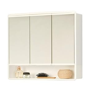 462108 Spiegelschrank Features: -Farbe: Wei . -Mit 3 Spiegelt ren. -Feste Schrankeinlagen. -Mit gro em offenem Ablagefach. Spiegelschrank Produktdetails: -Material: Kunststoff. -Material (Spiegelt r): Kristallglas. -Ma e: 50cm H x 59cm B x 16cm T.